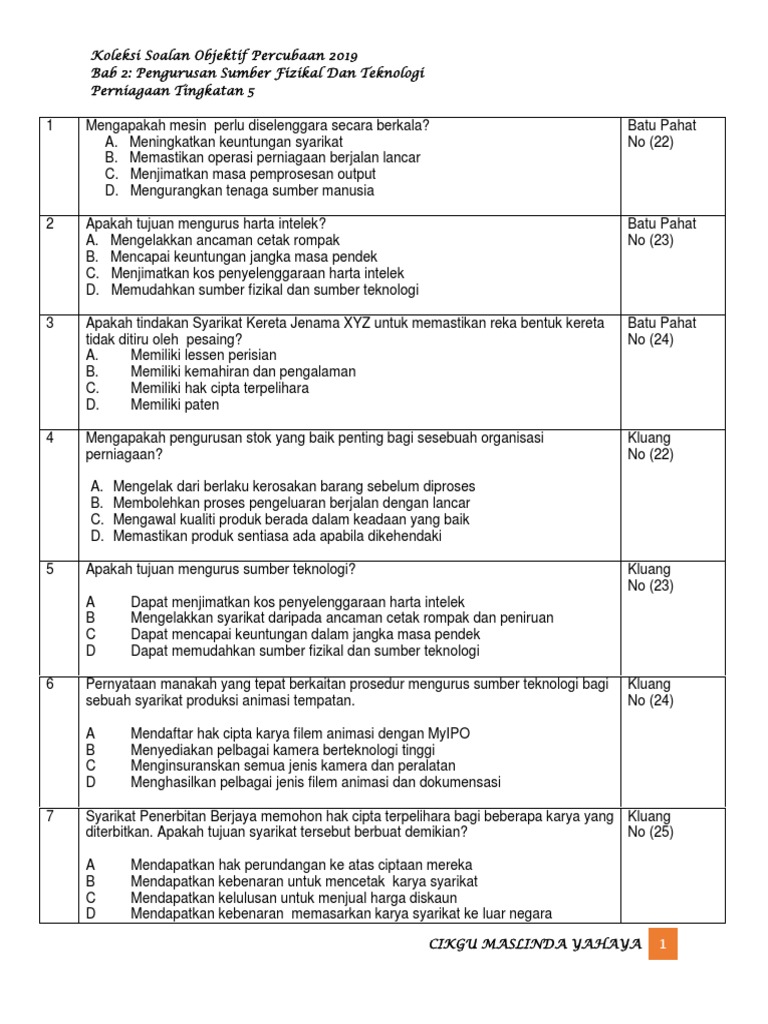 Koleksi Objektif Percubaan Bab 2 Ting 5 Pdf