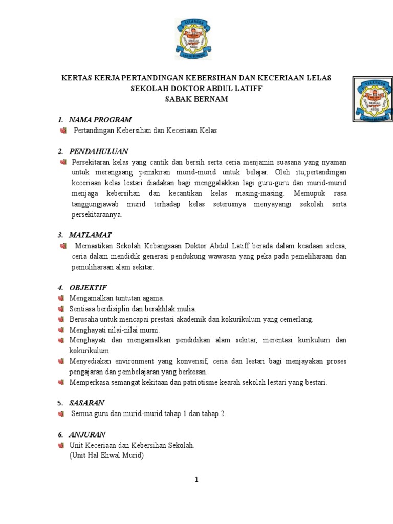 Kertas Kerja Pertandingan Kebersihan Dan Keceriaan Kelas 2017 Pdf