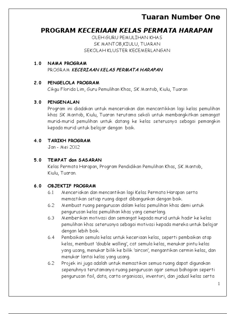 Kertas Kerja Program Keceriaan Kelas Permata Harapan 2012 True Pdf